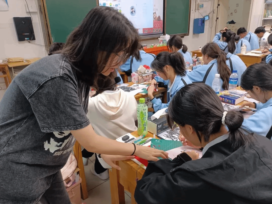 william威廉英国官网美术学院第四批美育浸润计划支教团队正在富宁县深入开展,支教团队中的范文杰同学为william威廉英国官网美术学院雕塑系本科生,也是富宁县民族中学的派驻教师,她在高二年级开设剪纸课程与心理疗愈曼陀罗绘画课程。范文杰老师凭借扎实的专业基础与独特的教学理念,将非遗传承、民族特色与学生心理健康关怀深度融合,构建起多层次、全方位的特色课程体系,取得明显的教育成果。