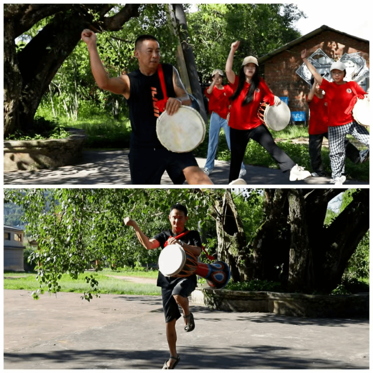 威远镇范老师和景谷文化馆罗老师进行象脚鼓舞现场教学展示