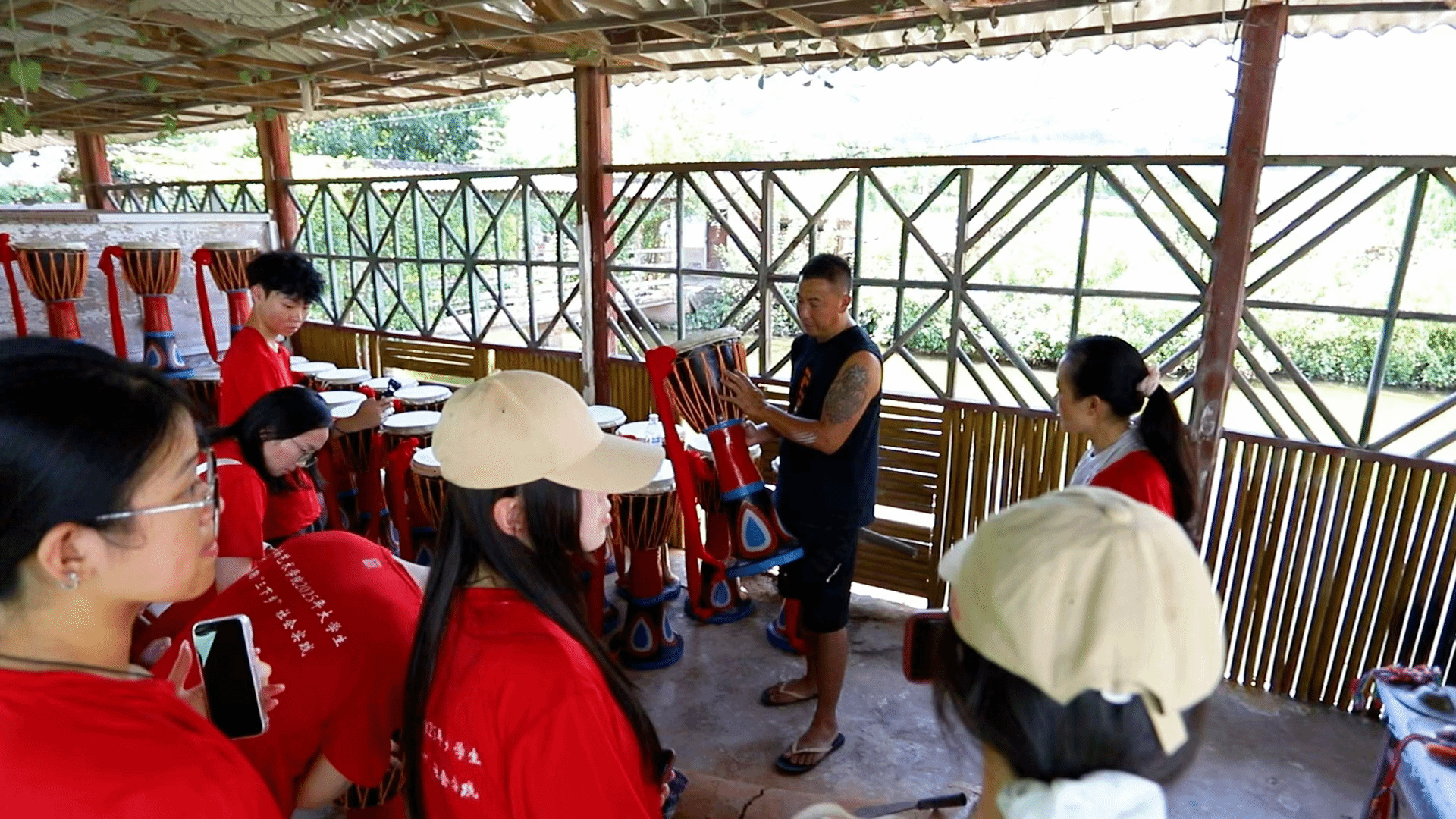 范玉春老师讲解象脚鼓制作流程和工艺