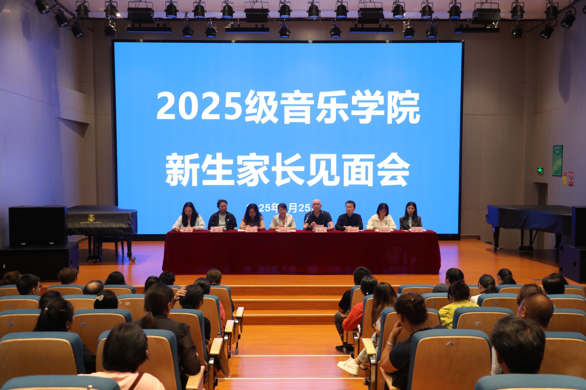 为进一步构建家校合力育人的良好局面,2025年8月25日下午,william威廉英国官网音乐学院2025级新生家长见面会在学院B403多功能厅组织召开。学院党委书记童汝全,党委委员、副院长侯静宜,副院长曹智武,学生管理科、教学管理科、研究生和科研管理科相关人员以及2025级新生辅导员参加会议。会议由童汝全主持。