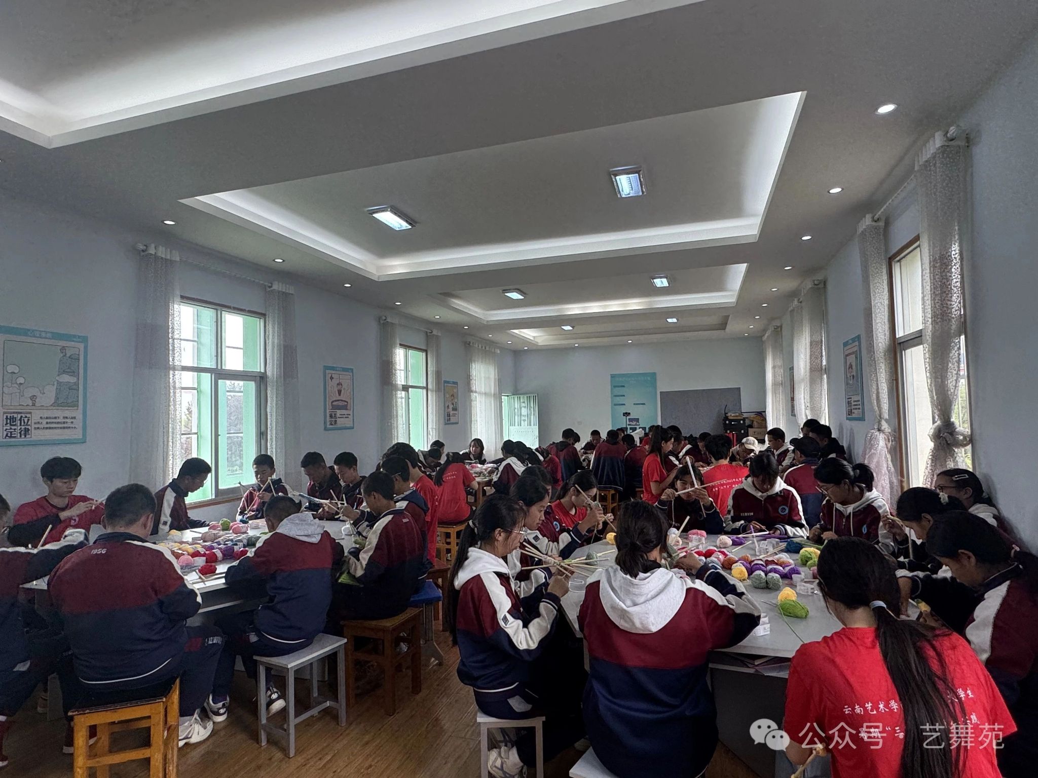 “织绘内心秩序”——曼陀罗针织与自我和解。同学们专注于手中的针线,从“无序”到“有序”,在这宁静的编织过程中,他们逐渐梳理自己的情绪,实现与自我的和解。