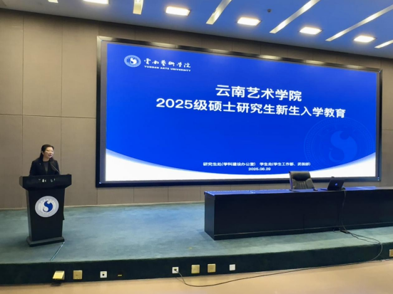 研究生处处长罗宇佳向新同学致以热烈欢迎,并详细介绍了学校近年来在学科建设、研究生培养领域取得的显著成果。她表示,这些成果既是学校深耕艺术教育的见证,更是新生们未来成长的“养分”,她鼓励研究生充分利用学校学科优势与培养平台,成长为兼具学术素养与创作能力的卓越艺术人才。
