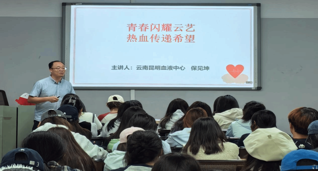 10月16日19:00,献血公益讲座率先在学校公共教学楼A204教室举行,各二级学院学生代表积极参加。讲座由云南昆明血液中心保见坤科长主讲。