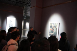 上午,美术学院党委书记刘恩权以及正在美术学院老师代表为同学们进行了耐心的讲解,展示了美术学院思政教育与美术教育相结合的成果,凸显我校在“大思政课”建设中的努力。