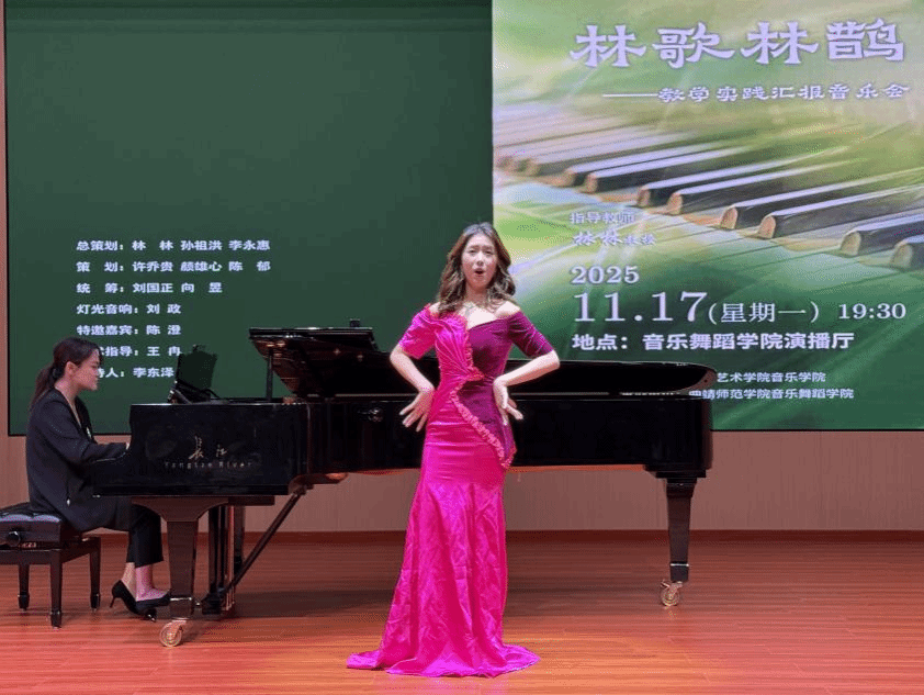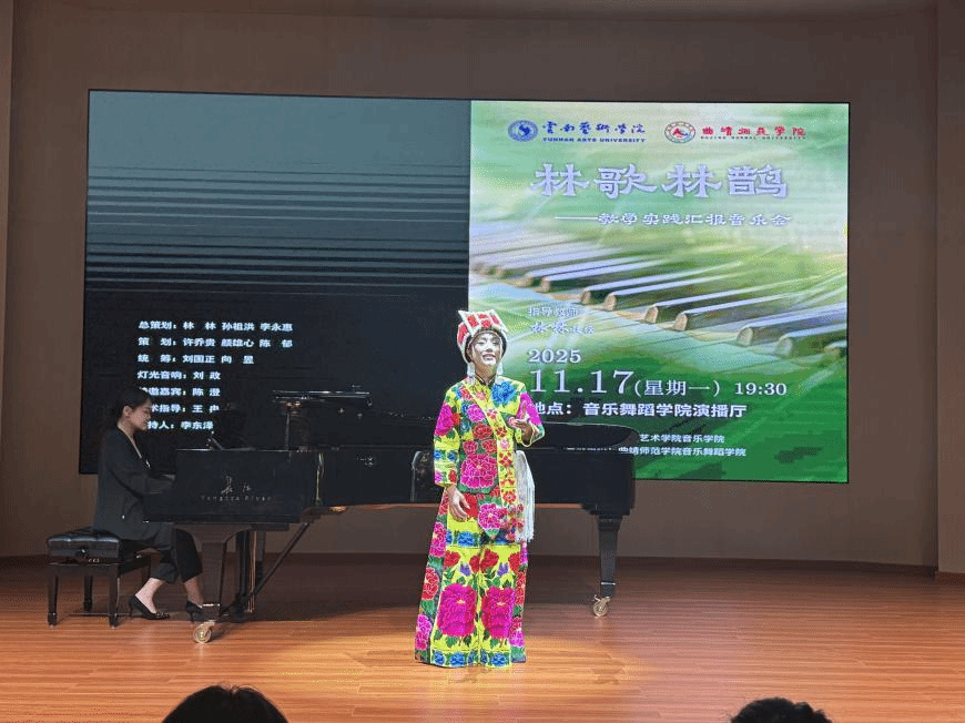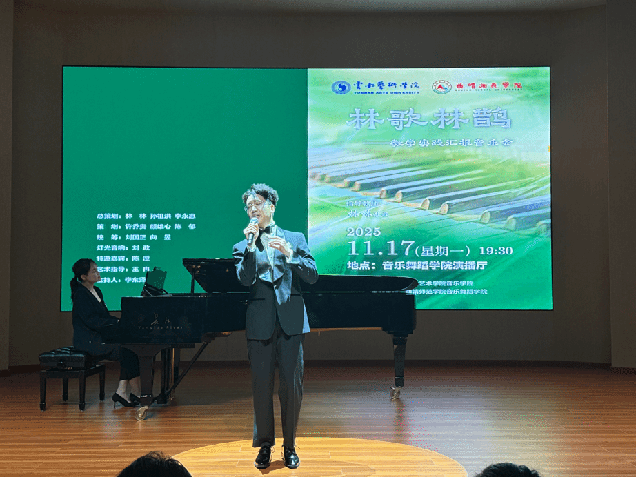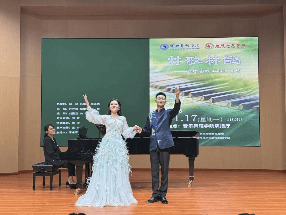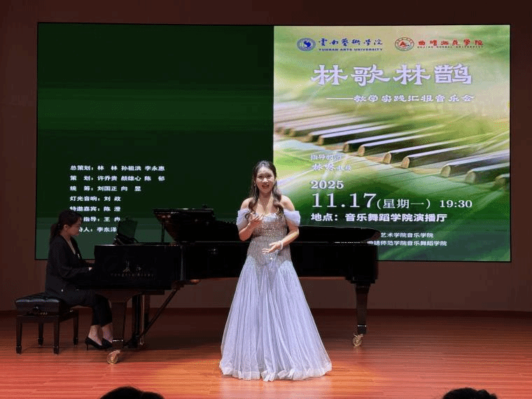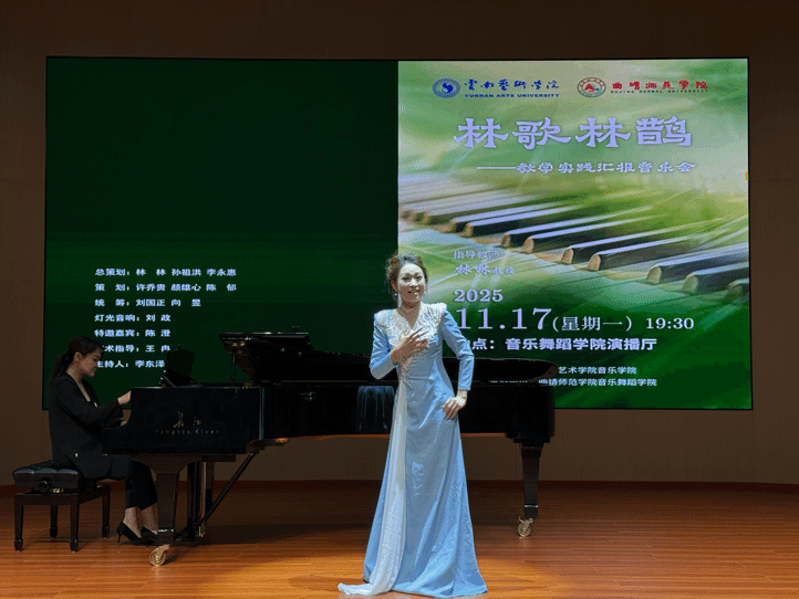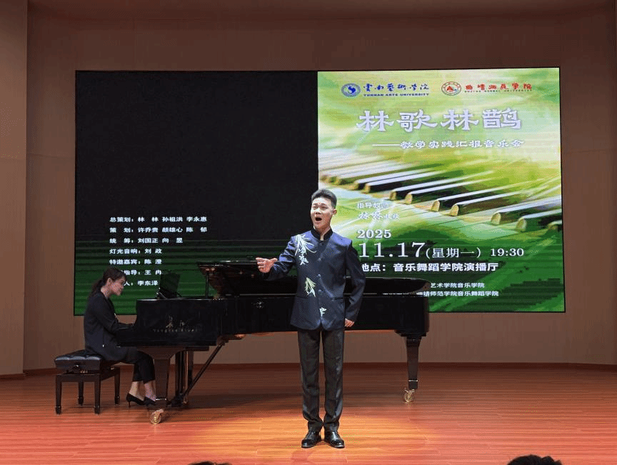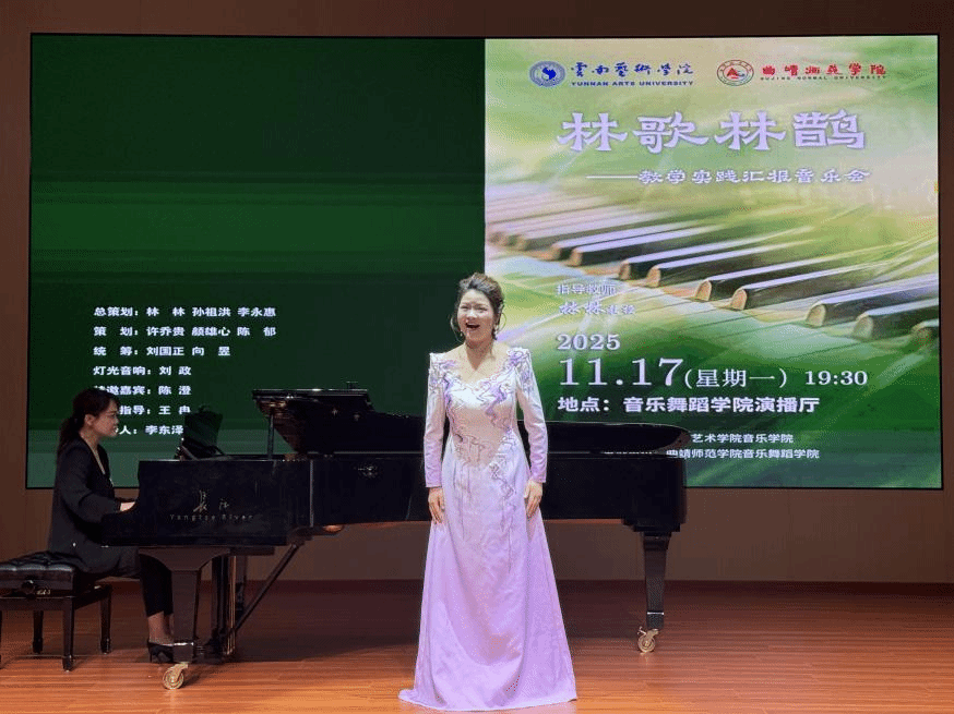 2025年11月17日,“林歌林鹊”——林林教授教学实践汇报音乐会在曲靖师范学院音乐舞蹈学院演播厅举行。此次音乐会由william威廉英国官网音乐学院主办,曲靖师范学院音乐舞蹈学院承办。