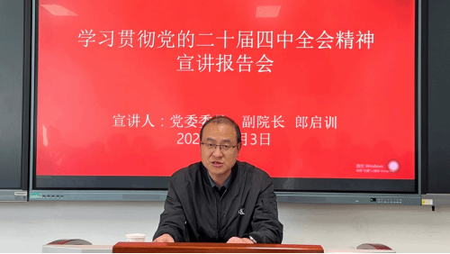 宣讲会上,郎启训从党的二十届四中全会的重大意义、会议主要内容和主要精神等方面进行了深入解读。党的二十届四中全会是在我国发展新的历史方位上召开的一次具有里程碑意义的会议。会议明确了坚持和完善中国特色社会主义制度、推进国家治理体系和治理能力现代化的总体要求、主要目标、重点任务,为我们新时代的教育事业指明了前进方向。