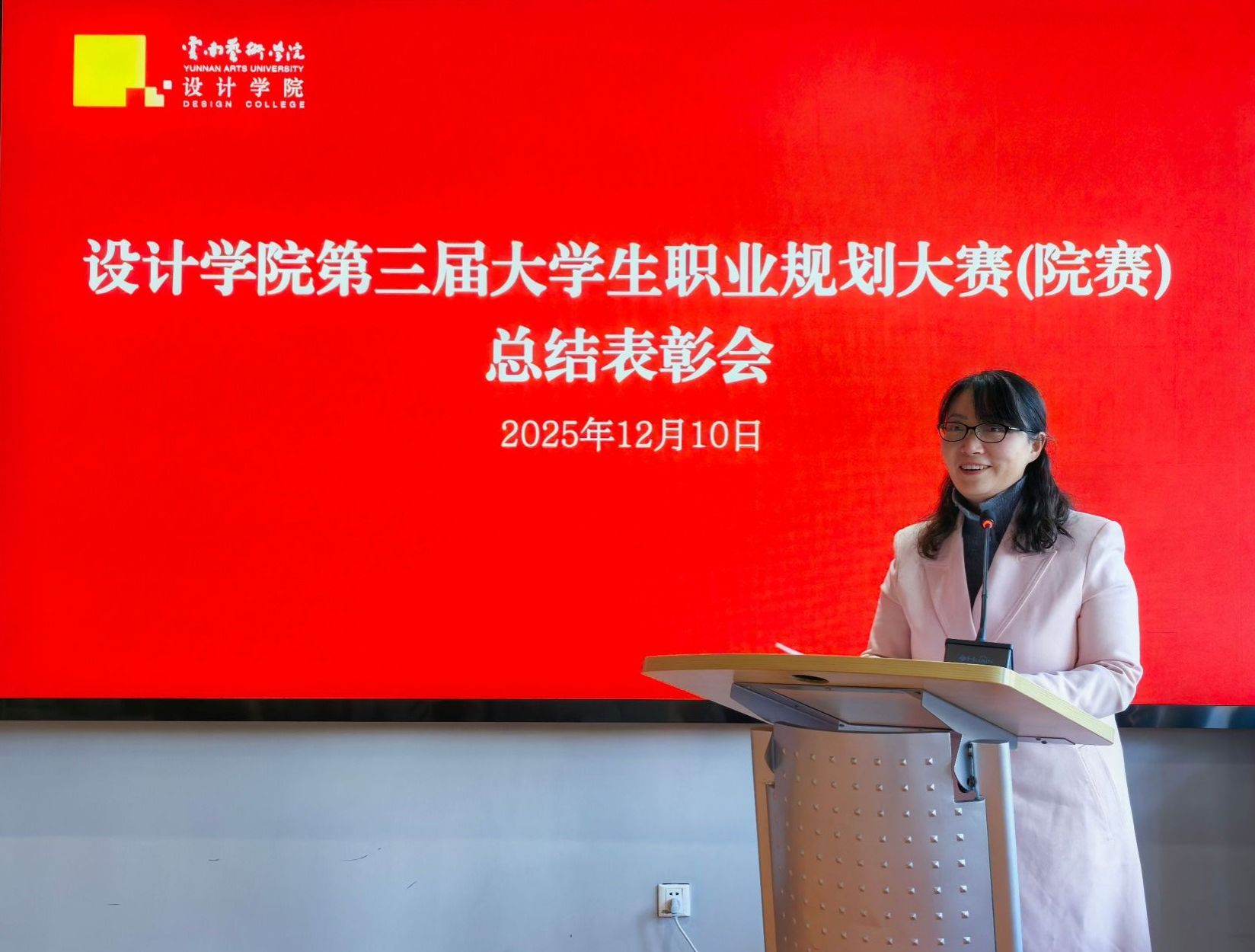 12月10日,设计学院召开第三届大学生职业规划大赛(院赛)总结会,学院党政领导和全体参赛选手、指导教师参加会议。会上通报了本次大赛开展情况,设计学院万凡院长宣读获奖名单,党政领导和老师们为参赛选手和优秀指导教师颁发了获奖证书。