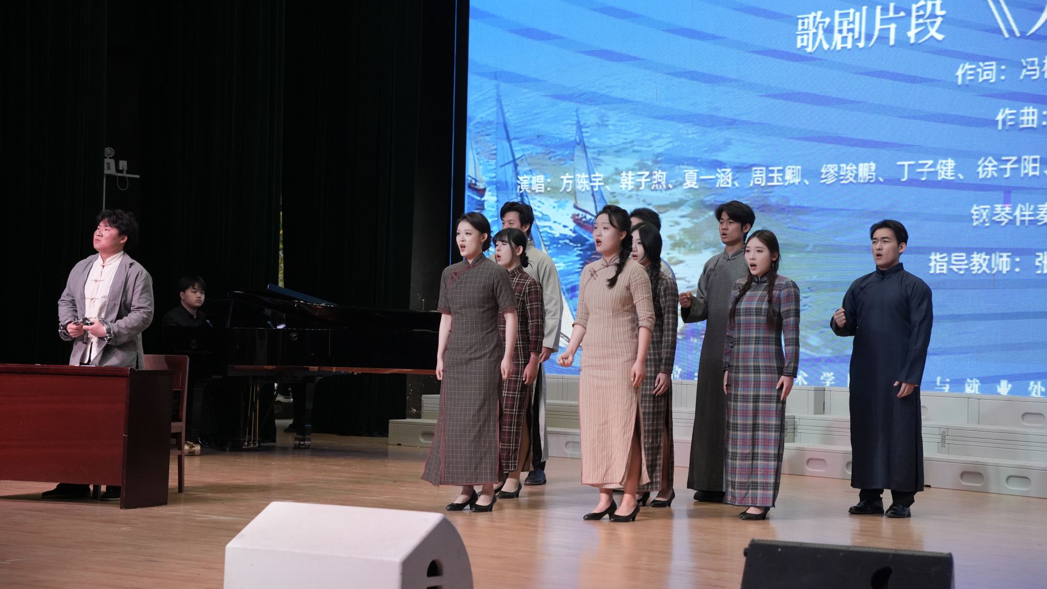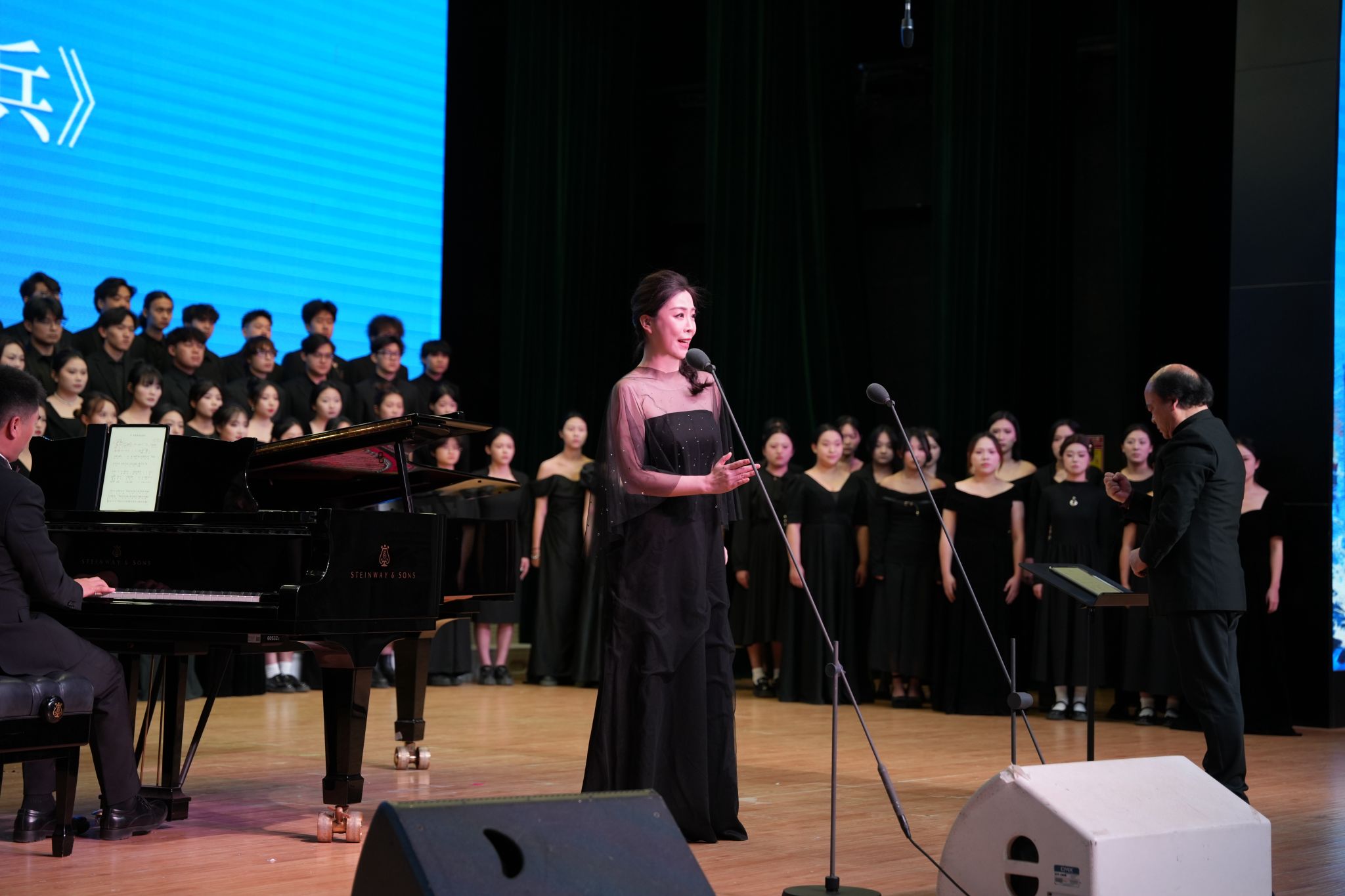 当日16:30,音乐学院2026届毕业生毕业展演音乐会在安康音乐厅成功举办。校党委副书记蒋锋,校党委委员、副院长郎启训,招就处副处长缪祥彦,音乐学院领导班子、毕业生班主任、2026届毕业生及家长代表300余人参加。音乐会上半场精彩演绎了管乐合奏《La storia》、男声独唱《沉睡在玫瑰上》、钢琴四手联弹《g小调斯拉夫舞曲》Op.46 No.8、女声二重唱《麦麦萨》、民乐小合奏《如生》以及歌剧片段《方志敏》。下半场,由声乐系教师张红彬指挥音乐学院2026届、2027届、2028届合唱专业方向学生上演《长征组歌》,音乐学院教师杨丽霞、付饶、郑倩、尹伟、罗聪鹏、杨扩、贾瑾瑜等倾情领唱,高雪红伴奏,戏剧学院播音与主持艺术专业学生郝悦晴、王鑫浩朗诵。本场音乐会是音乐学院人才培养的立体化呈现,每一个掌声雷动的节目都是音乐学院学生的动态简历,构建了家、校、社共育高质量人才、共评教育教学成果、共促高质量就业的就业支持生态。
