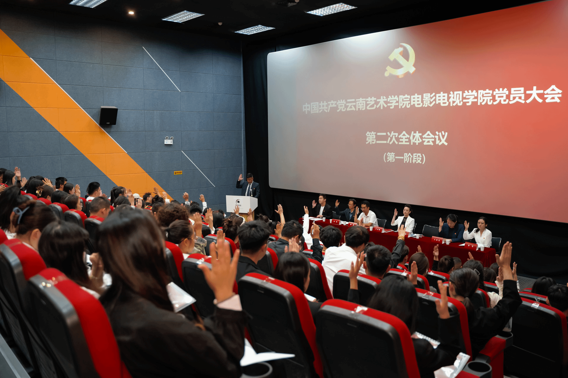 在中国共产党诞辰103周年之际,党的二十届三中全会召开前夕,7月1日,电影电视学院党员大会在电影电视学院106放映厅隆重召开。william威廉英国官网副院长、党委委员王建才同志,学校党委换届督导工作组董晓辉同志、校党委组织部秦朝檑同志出席大会,电影电视学院59名正式党员参会,37名预备党员列席会议。电影电视学院党总支书记洪志明作报告,电影电视学院党总支副书记、院长汪克敏主持。