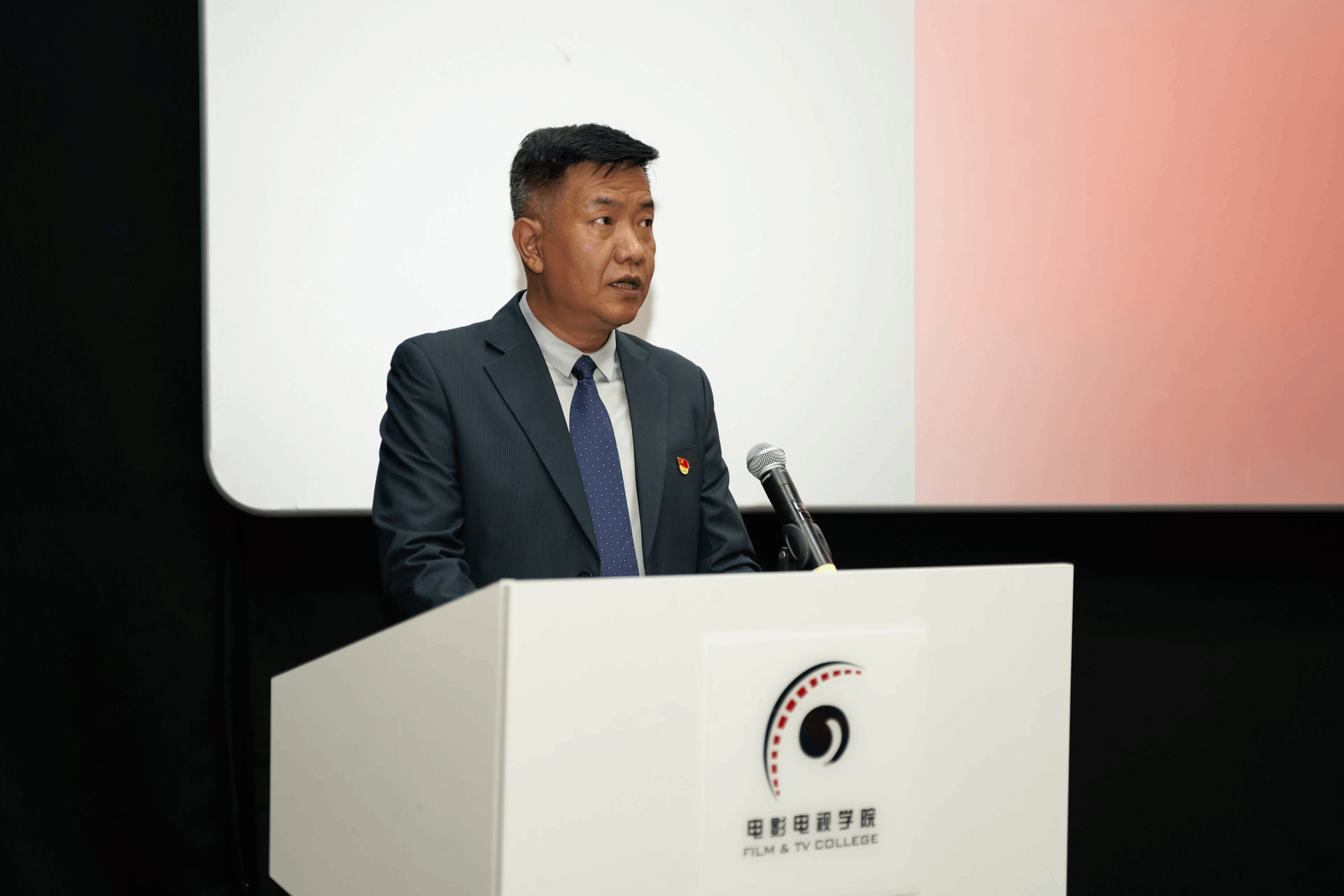 电影电视学院党总支书记洪志明同志代表电影电视学院上一届党总支作题为《坚持立德树人,聚焦高质量发展 党建领航推动电影电视学院内涵式发展新篇章》的工作报告。