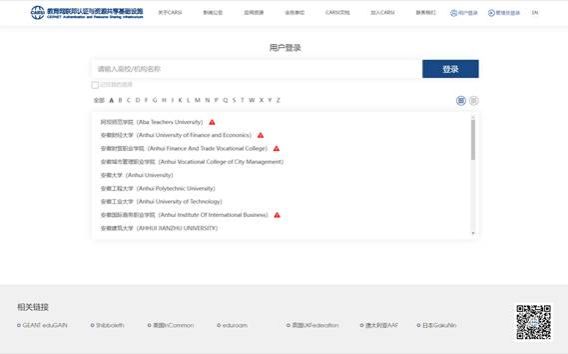 打开校园网首页,通过底部CARSI链接登录访问,如下图: