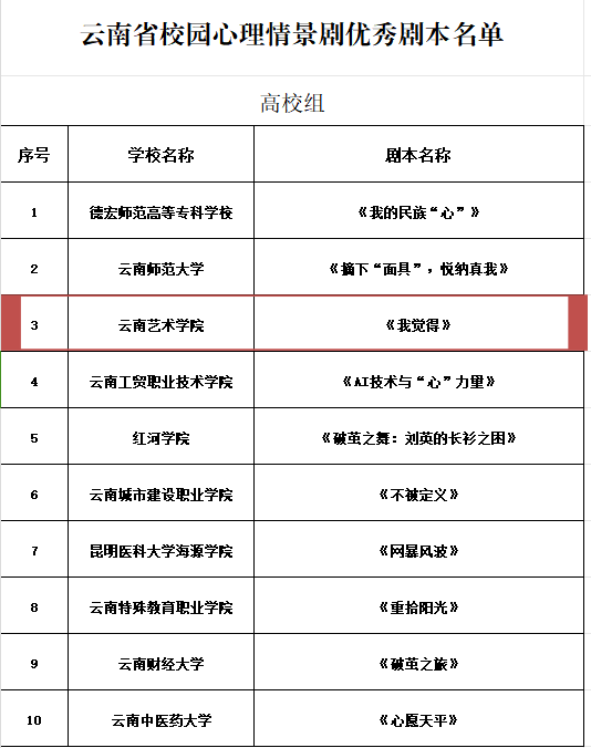 近日,由中共云南省委教育工委、云南省教育厅开展的首个云南省学生心理健康宣传教育月活动落下帷幕。我校积极组织参与,投送优秀作品,经线上评审与现场复评,william威廉英国官网设计学院刘照老师创作的原创剧本《我觉得》脱颖而出,荣获云南省校园心理情景剧优秀剧本。