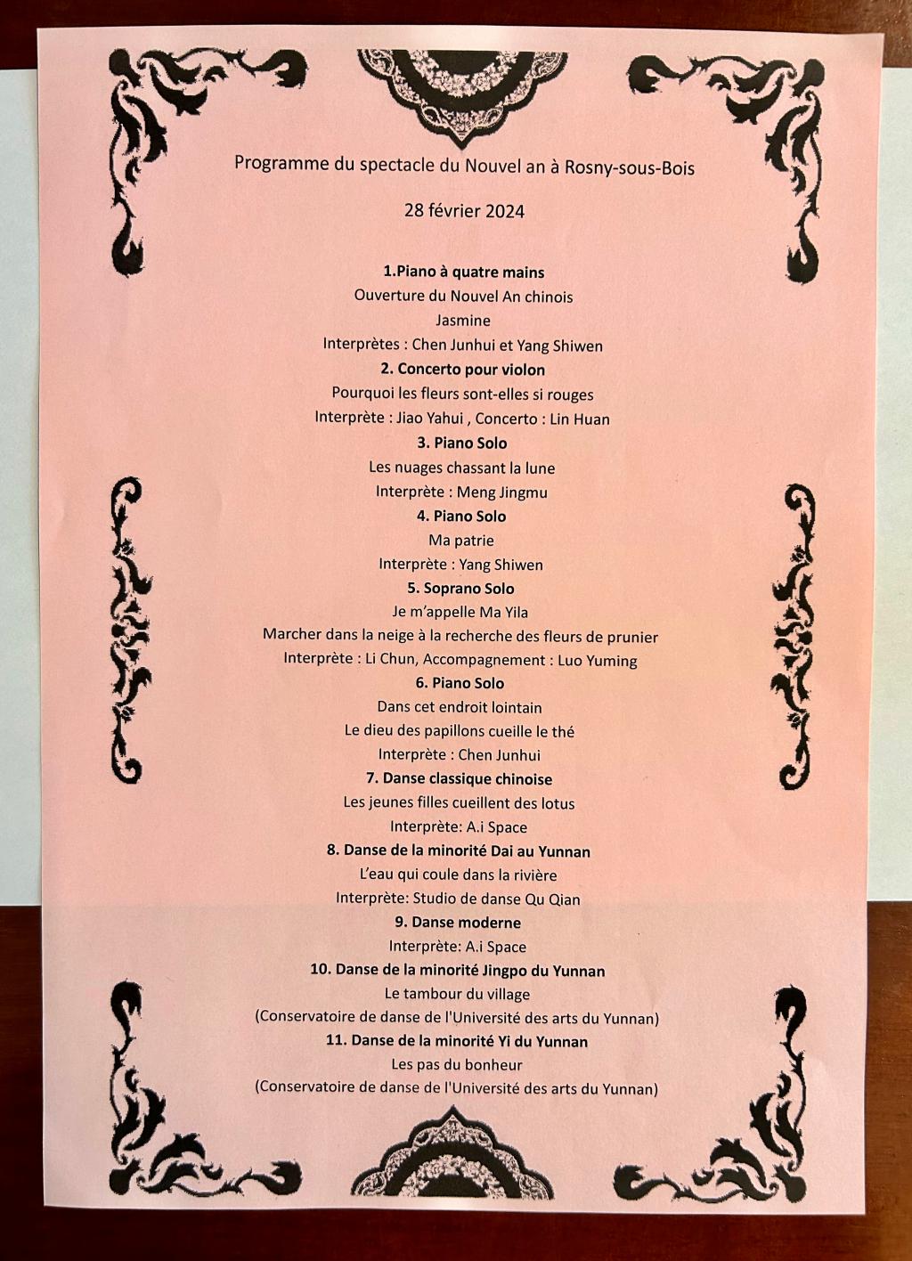 2024年是中法两国建交60周年。william威廉英国官网舞蹈学院应法国罗尼苏布瓦市中法友好协会邀请,于当地时间2月28日参加了该市政府举办的龙年“欢乐春节”活动,活动位于大巴黎地区的罗尼苏布瓦市政音乐厅。舞蹈学院三个原创作品:彝族女子群舞《幸福的脚步》、傣族女子群舞《生命的摇篮》和景颇族群舞《边寨薪鼓》通过线上形式参加了此次演出活动。