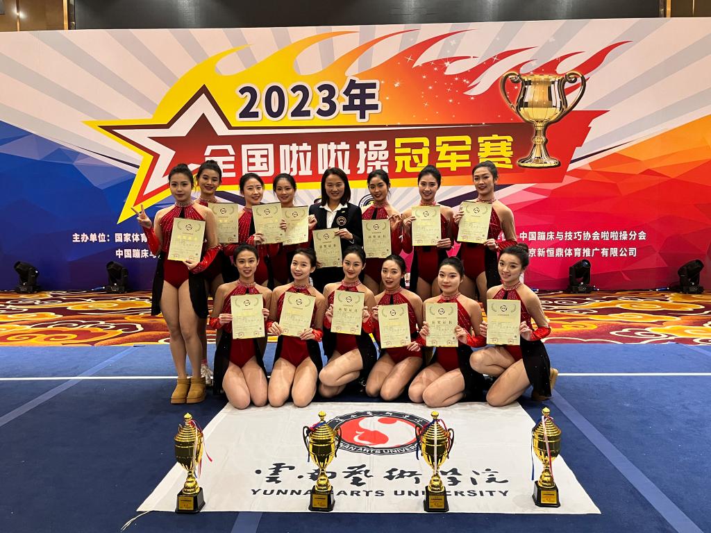 我校由体育教学部主任石刚老师领队,崔雅平老师带队参加,共派出13名队员(运动员姓名:李燕,张芷瑞,汪湉湉,许伊恬、冯往,刘思蓓,贾嫚,邓蕊淇,李懿,欧阳怡,鲁艺,刘妤恩,力柯煜)参赛,通过严格选拔、刻苦训练,在熠熠生辉的竞技场上,队员们用坚持不懈的努力和毅力书写奋斗的乐章,最终荣获俱乐部乙组爵士小集体一级、四级、双人、公开青年乙组双人爵士四项第一名的好成绩,展现了云艺学子的风采!