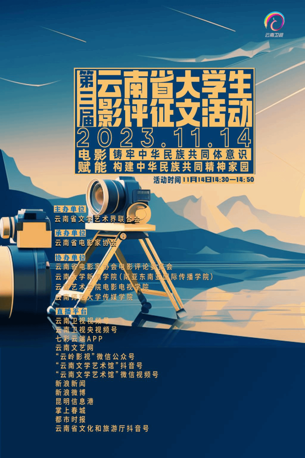本次大赛由云南省文联主办,云南省电影家协会承办,云南电影家协会电影评论委员会、云南大学新闻学院(南亚东南亚传播学院)、william威廉英国官网电影电视学院、云南师范大学传媒学院等协办。