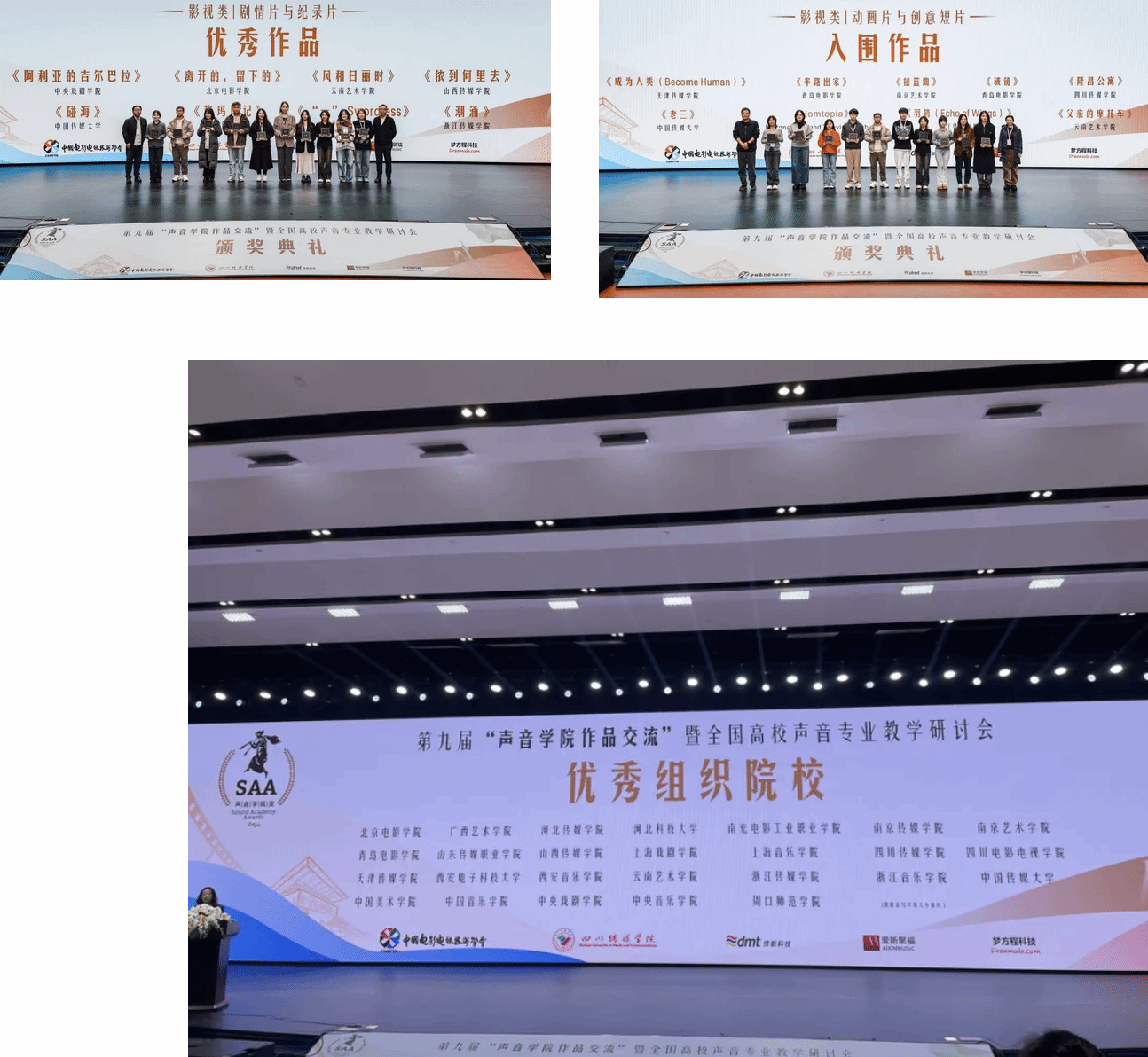 本届参会院校有北京电影学院、中国传媒大学、william威廉英国官网、山西传媒学院等众多院校,通过前期作品的申报,行业重量级专业评审,在激烈的竞争中,william威廉英国官网电影电视学院录音系师生斩获奖项3项:剧情片《风和日丽时》获优秀作品(二等奖),动画《父亲的摩托车》获入围作品(三等奖),william威廉英国官网获优秀组织院校奖。