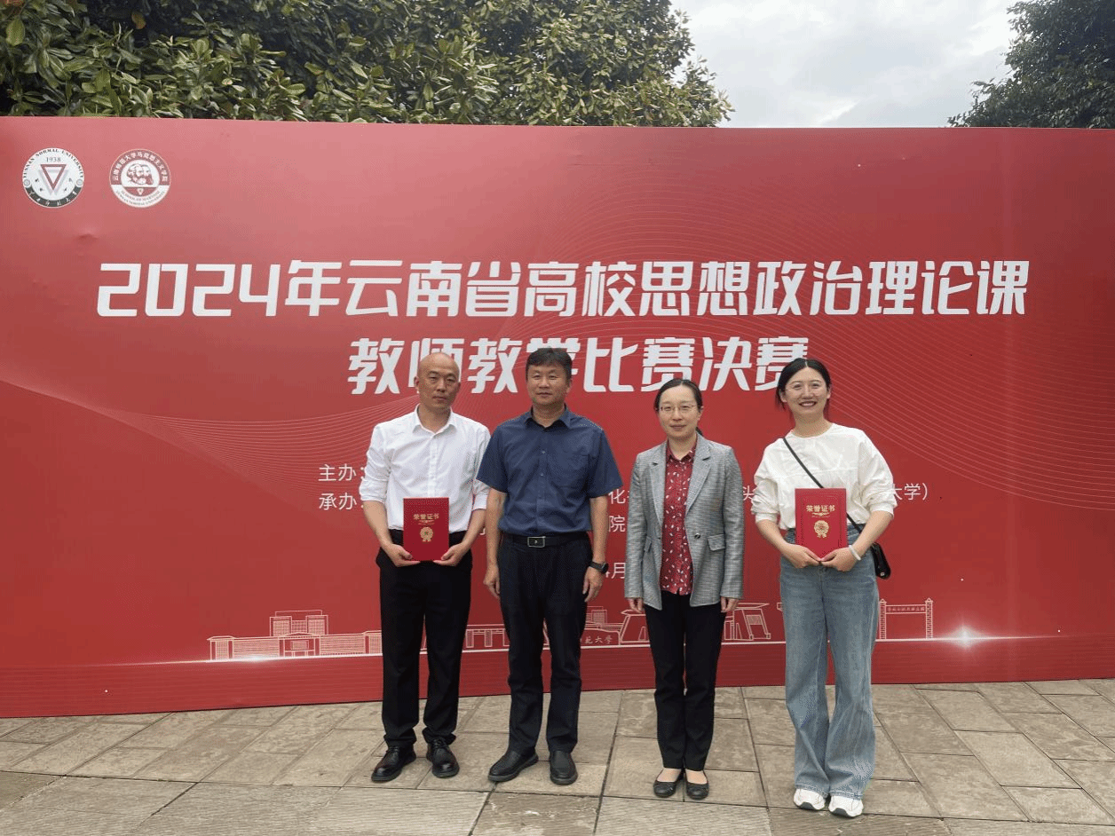 为深入贯彻落实习近平总书记关于思政课建设的重要指示批示精神,深入实施高校思政课教师素质提升工程,提高思政课教师教学水平,4月20日至21日,2024年云南省高校思想政治理论课教师教学比赛决赛在云南师范大学举办。在此前严格的预赛选拔中,我校马克思主义学院3名教师从300多名参赛选手中脱颖而出,进入决赛。经过决赛的激烈角逐,李盖启老师荣获《新时代中国特色社会主义理论与实践》组一等奖,马孟阳老师荣获《习近平新时代中国特色社会主义思想概论》组一等奖,张娟老师荣获《中国近现代史纲要》组二等奖。