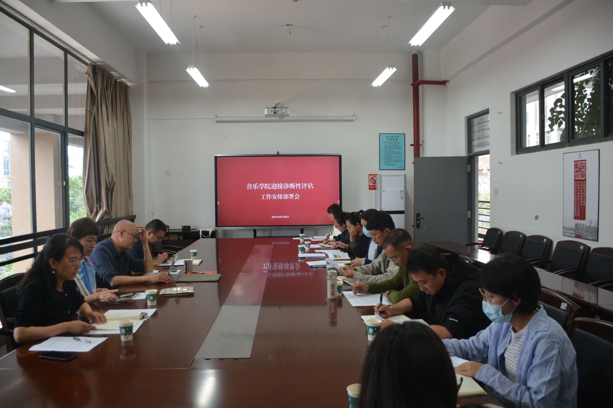 2024年5月8日13:00,音乐学院在A301会议室召开迎接诊断性评估工作安排部署会。音乐学院党政班子成员、相关科室负责人、教学管理科工作人员等参加会议。副院长侯静宜主持会议。