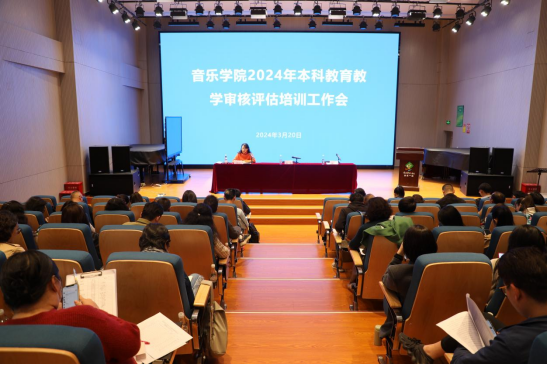 2024年3月20日14:30,音乐学院在B403音乐厅召开2024年本科教育教学审核评估培训工作会。此次会议旨在深化教育教学改革,提升教学质量。音乐学院副院长侯静宜以《数据透视:课堂教学改革切入点的发现与实践》为主题,进行深入的专题培训。音乐学院领导班子成员以及全体教职工共同参与,共同探讨教育教学的新理念、新方法。