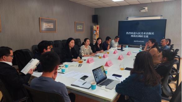 10月19日,人民美术出版社品牌中心张钟心副主任一行到我校调研座谈。教务处、科学技术处、美术学院、设计学院、影视学院、高职学院领导及部分骨干教师参加座谈。