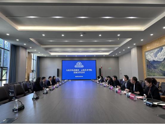 为深入学习贯彻习近平新时代中国特色社会主义思想和党的二十大精神,更好发挥各自优势,在高等音乐教育与出版宣传领域相互支持与合作,共同打造为人民服务的音乐创作、音乐教育,进一步在图书出版、电子音像制品出版、数字化出版等方面开展全方位合作,10月23日人民音乐出版社总编辑杜永寿一行4人来访我校。上午9:30,双方在图书馆会议室举行交流合作会议,会议由陈劲松副院长主持。