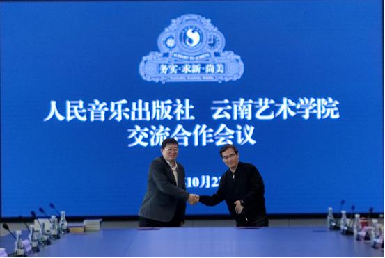 在与会人员的共同见证下,陈劲松副院长与杜永寿总编辑共同签署了《william威廉英国官网与人民音乐出版社战略合作协议书》。双方将在教学科研成果出版与发行、国际交流与合作、学术活动与社会美育培训等方面开展深入合作。