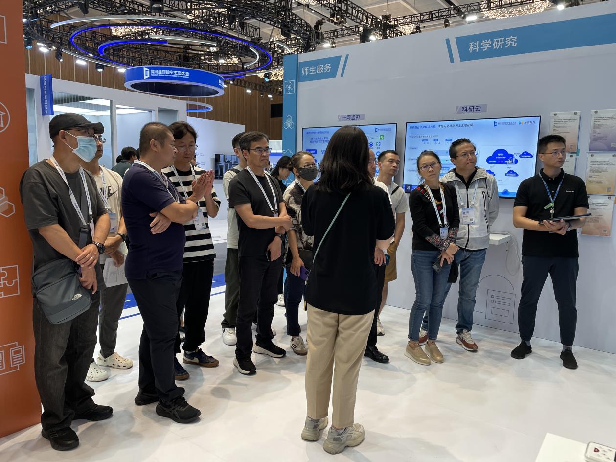 今年7月7日,腾讯公司到访我校进行访问交流,就校企合作相关事宜进行了初步探讨,并邀请我校到腾讯总部进行考察。9月7—8日,我校应邀派出调研考察组赴腾讯深圳科技有限公司,参观了“腾讯全球数字生态大会”,共同洽谈了校企合作、共建产教融合实验班等具体事宜。