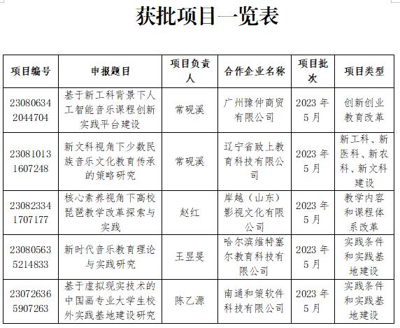 近日,教育部高教司下发了《关于公布2023年产学合作协同育人项目立项名单的通知》(教高司函〔2023〕),我校陈乙源老师主持的《基于虚拟现实技术的中国画专业大学生校外实践基地建设研究》等5个项目获批立项。
