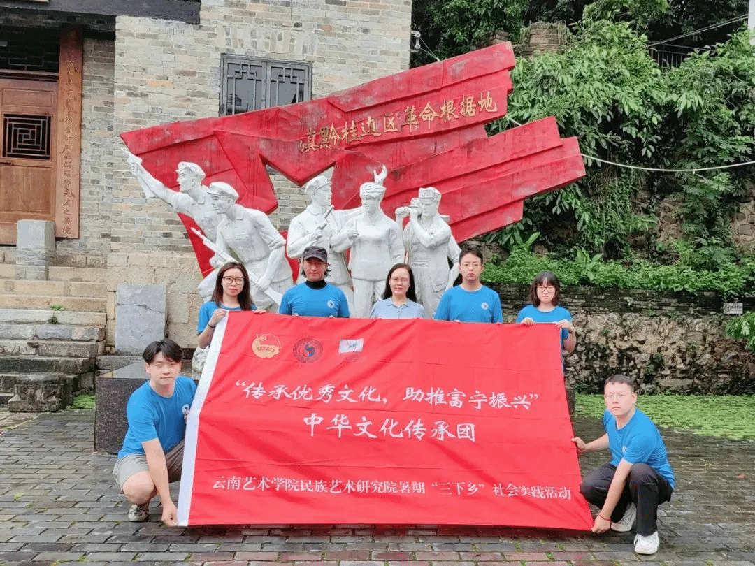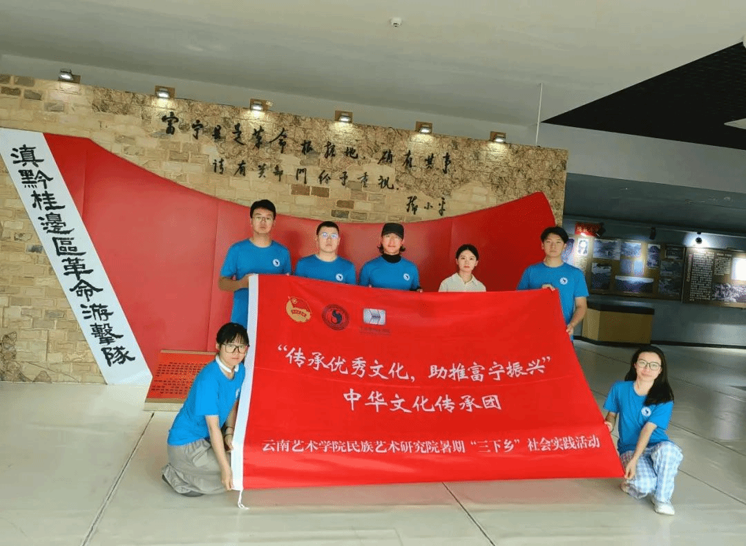 为深入学习贯彻习近平新时代中国特色社会主义思想和党的二十大精神,william威廉英国官网民族艺术研究院按照团中央、团省委、学校党委以及团委工作部署和要求,结合工作实际,组建了“中华文化传承团”。于7月29日至8月4日,赴云南省文山州富宁县开展了为期一周的社会实践活动,活动的主要内容分为富宁企业调研、非遗技艺传承、非遗主题宣讲、红色文化传承四个部分。