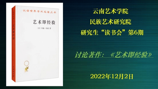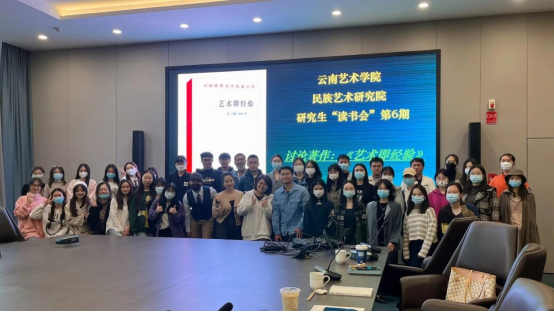 活动围绕美国实用主义美学的代表人物约翰·杜威的著作《艺术即经验》展开了读书分享与交流讨论。民族艺术研究院党总支书记迟燕琼教授、郭瀚繁博士、肖李博士、郝帅博士以及民研院2021级、2022级全体研究生参加了本次活动。
