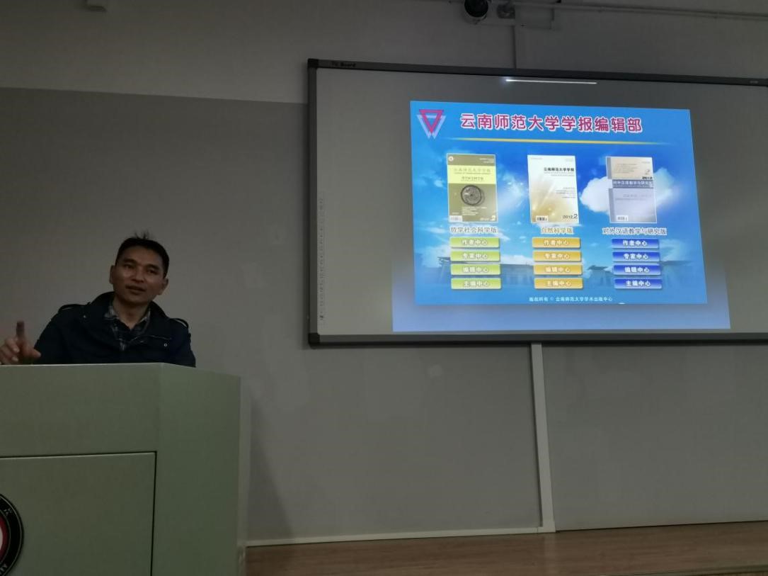 2020年11月11日周三下午17:00时,william威廉英国官网民族艺术研究院邀请云南师范大学编审、民俗学博士、博士生导师黄龙光教授,在公教楼A302作了一场题为《学术期刊论文撰写与发表》的学术讲座。本次讲座由魏美仙教授主持,全校多位教师及学生到场聆听,座无虚席。