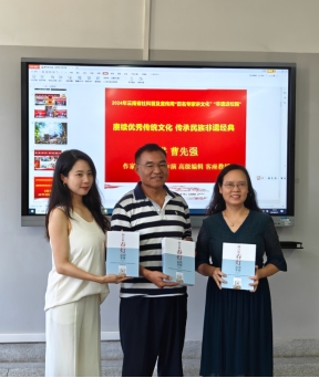 本次活动由民族艺术研究院党总支书记、院长迟燕琼教授主持,民族艺术研究院全体教师及研究生参加了此次讲座。活动伊始,迟燕琼教授向大家介绍了曹先强教授的学习、工作经历以及学术成果等,并表示阿昌族作为人口较少的民族,具有重要的研究价值,鼓励同学们对云南民族艺术展开深入的探索。随后,曹先强教授将所撰专著《阿昌族春灯实用手册》赠予民族艺术研究院和图书馆收藏。