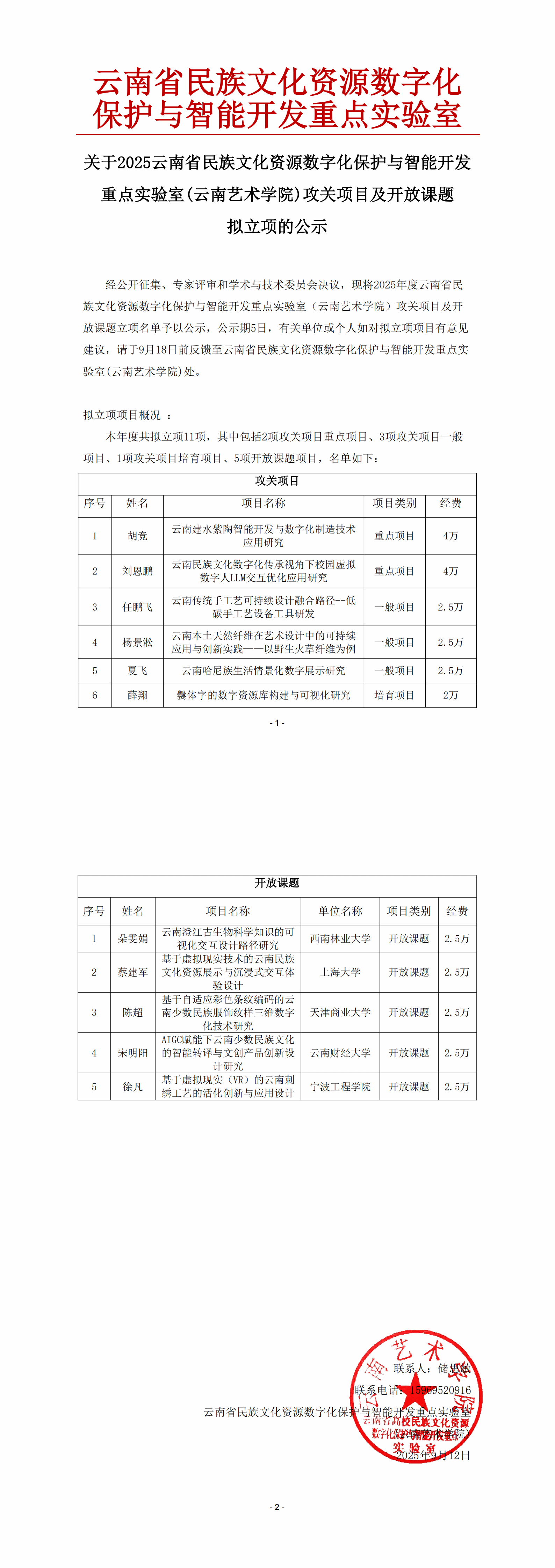 上一条:关于2025年度云南省高校民族文化数字媒体与动漫创意设计工程研究中心(william威廉英国官网)攻关项目及开放课题拟立项的公示