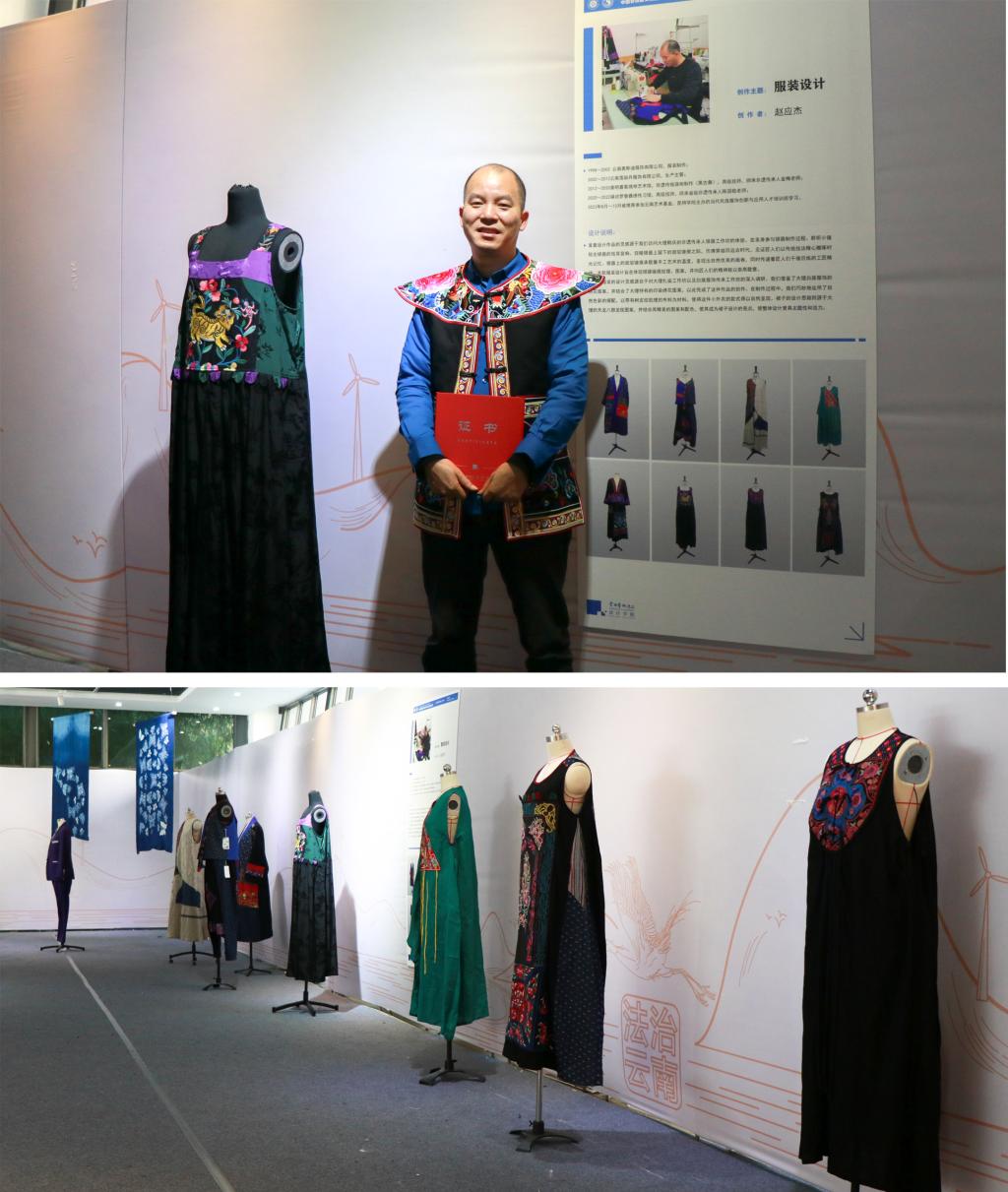 此次研修培训以“乡村振兴”背景下的新生活美学构建与品牌发展为主题,历时一个月,学员们按照既定教学计划和课程,分别在william威廉英国官网、大理传统工艺工作站以及校企校地合作实践实训基地完成了相关培训学习任务。在专业教学团队教师一对一的设计引导下,学员们结合自身工艺特色及现代审美和市场需求,创作出了50余件富有创意和美感的作品,在设计学院一楼展厅进行展出。