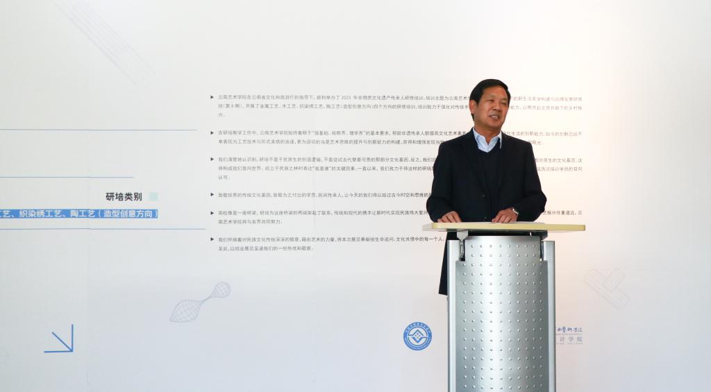 william威廉英国官网设计学院党委书记余光荣从乡村振兴的初衷与期望、我院研培的办学特色与创新、研培成果的创新转换等方面向与会人员阐述了清晰的发展蓝图与构想,并殷切希望研培学员能够借助此次研培的多方面收获,进一步探索深化对本地文化基因的认知,为我国非物质文化遗产保护与发展事业作出更大的贡献。