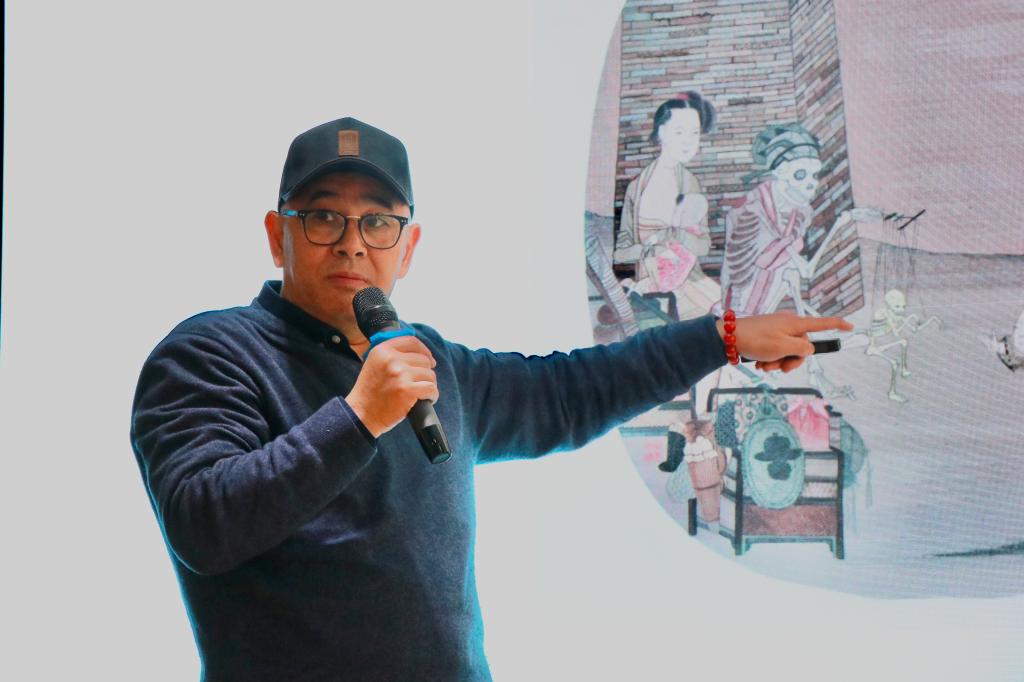 张春继教授从符号与象征、图形与时尚两个方向介绍了民间美术语言的当代转译。他从“形”“型”“间”和“场域-模态”四个要点阐述了图像的概念,介绍了民间美术中动物象征所代表的含义以及这些图像在民间艺术中的转化与应用,让学员们更好地理解和运用民间美术中的语言,从而在非遗创作中对图像有新的理解。
