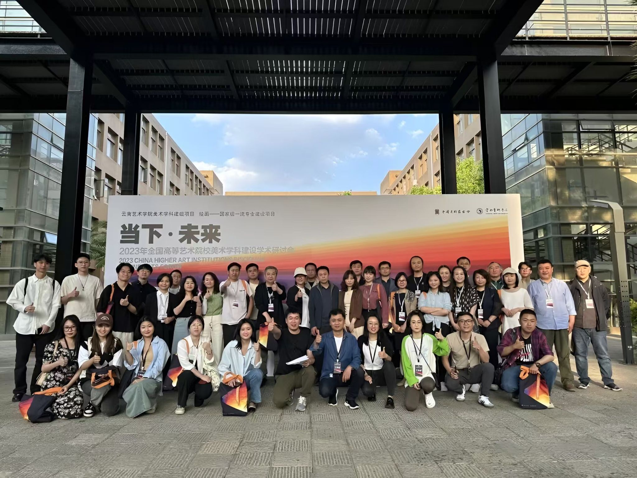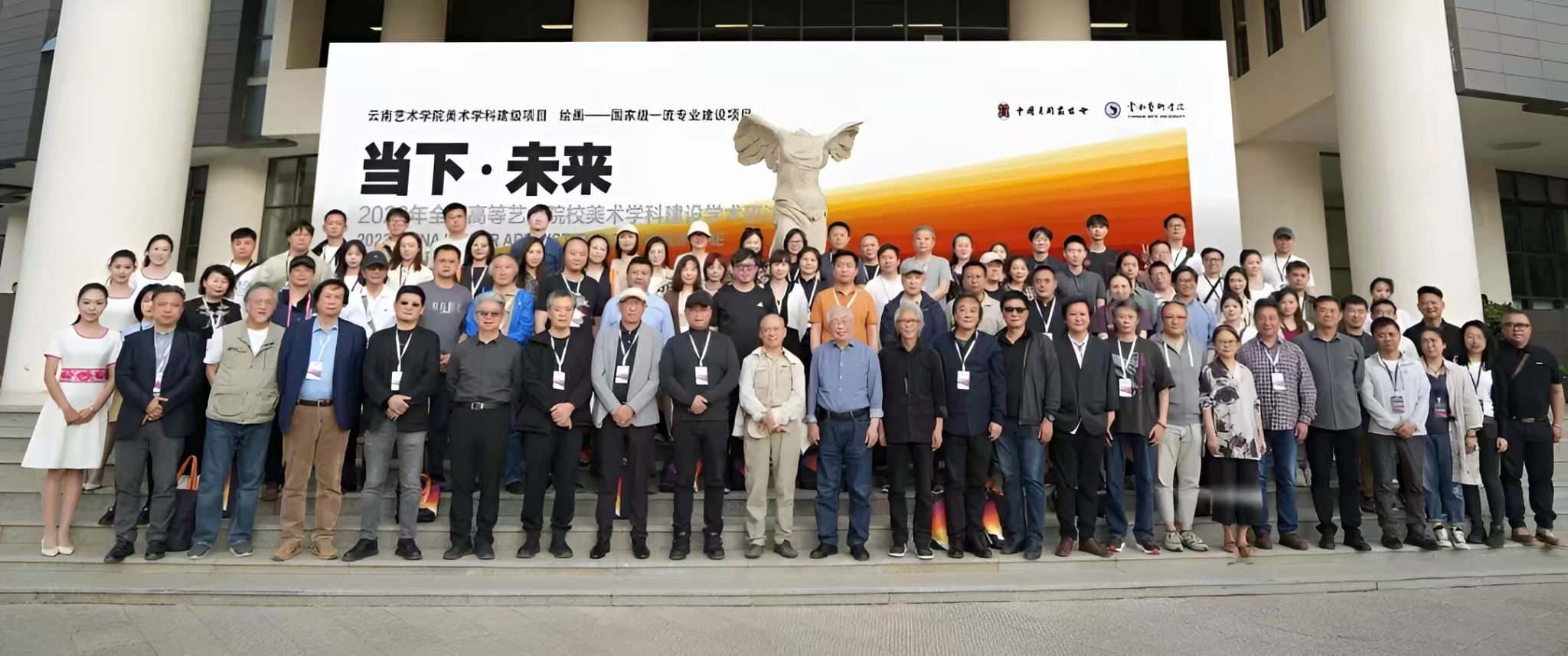 当下·未来 2023年全国高等艺术院校美术学科建设学术研讨会”邀请了国内21所高等艺术院校代表教师以及各研究机构和艺术机构代表106人。围绕高等艺术院校壁画发展路径, “多元共存——壁画教学实践与创作的转化”和“和合共生——现代壁画教学设计及成果应用” 三个方面展开学术交流,为新时代中国壁画教学搭建学术平等、讨论自由的交流平台,集思广益,积极推动高校壁画教学的发展。论坛为期两天,同时在三个会场充分展开讨论。