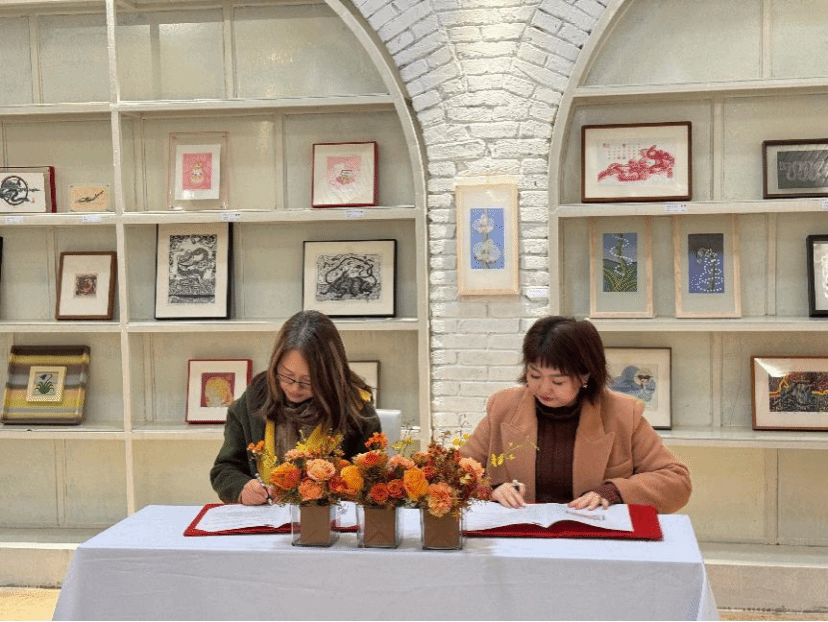 (曹悦院长与尹敏馆长签约现场)