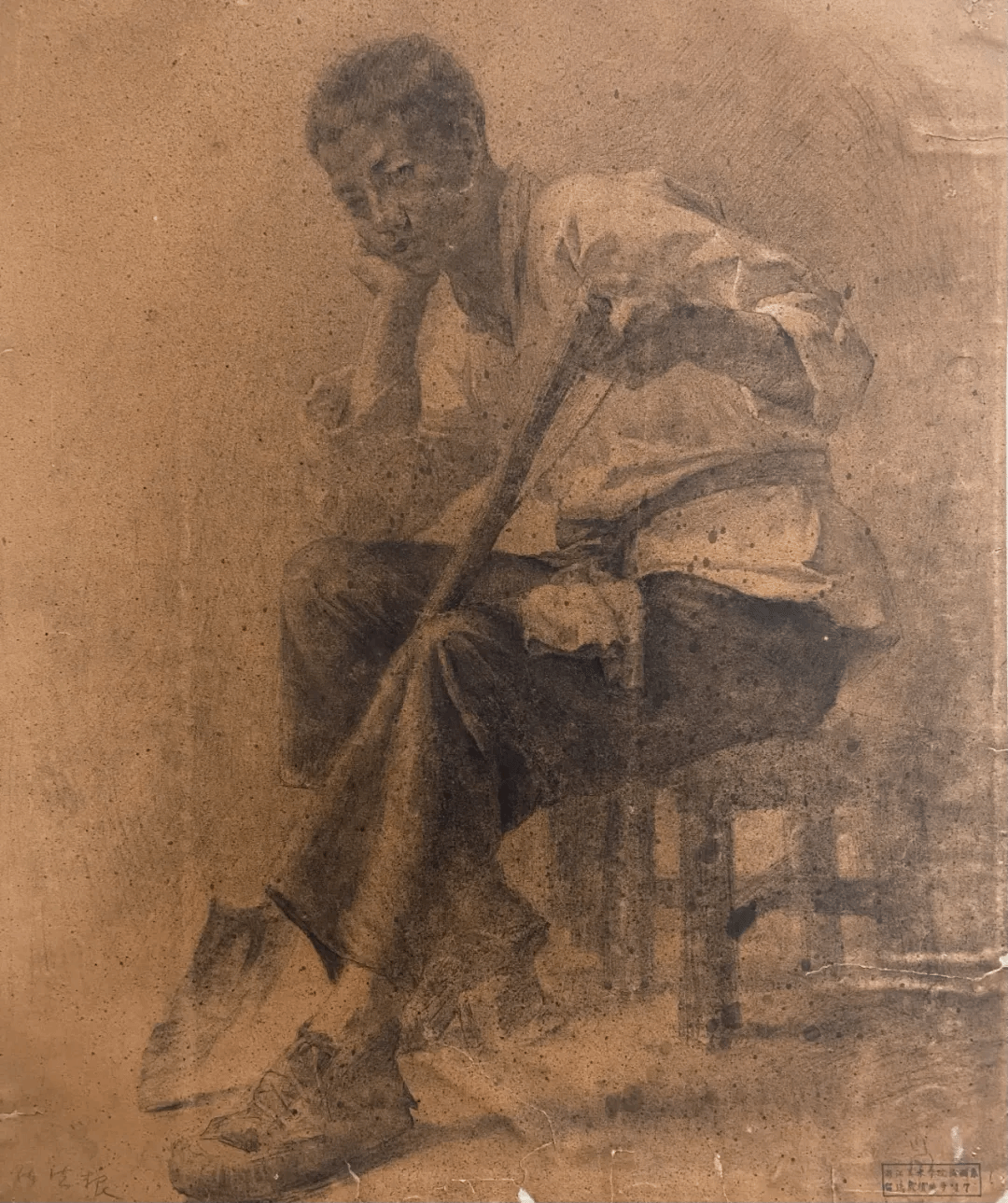 张法根-《持锹少年》-55.4×46cm-纸本素描-1953年