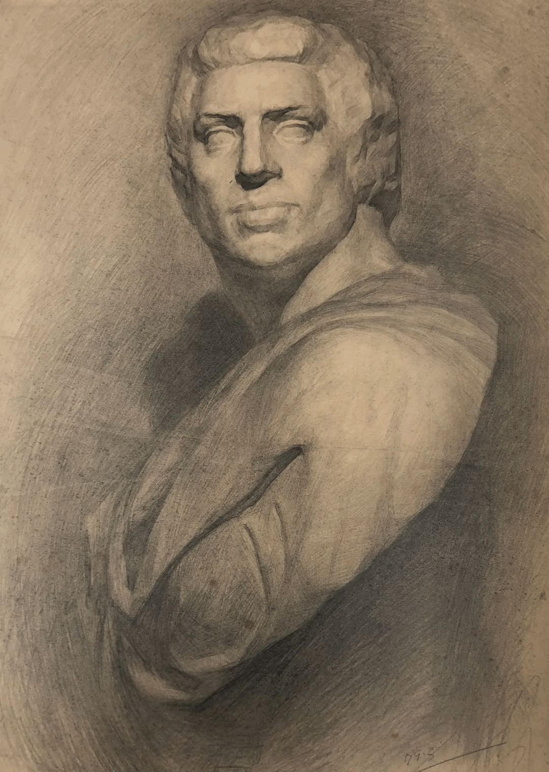 许江-《布鲁图斯》-52×77cm-纸本素描-1979年