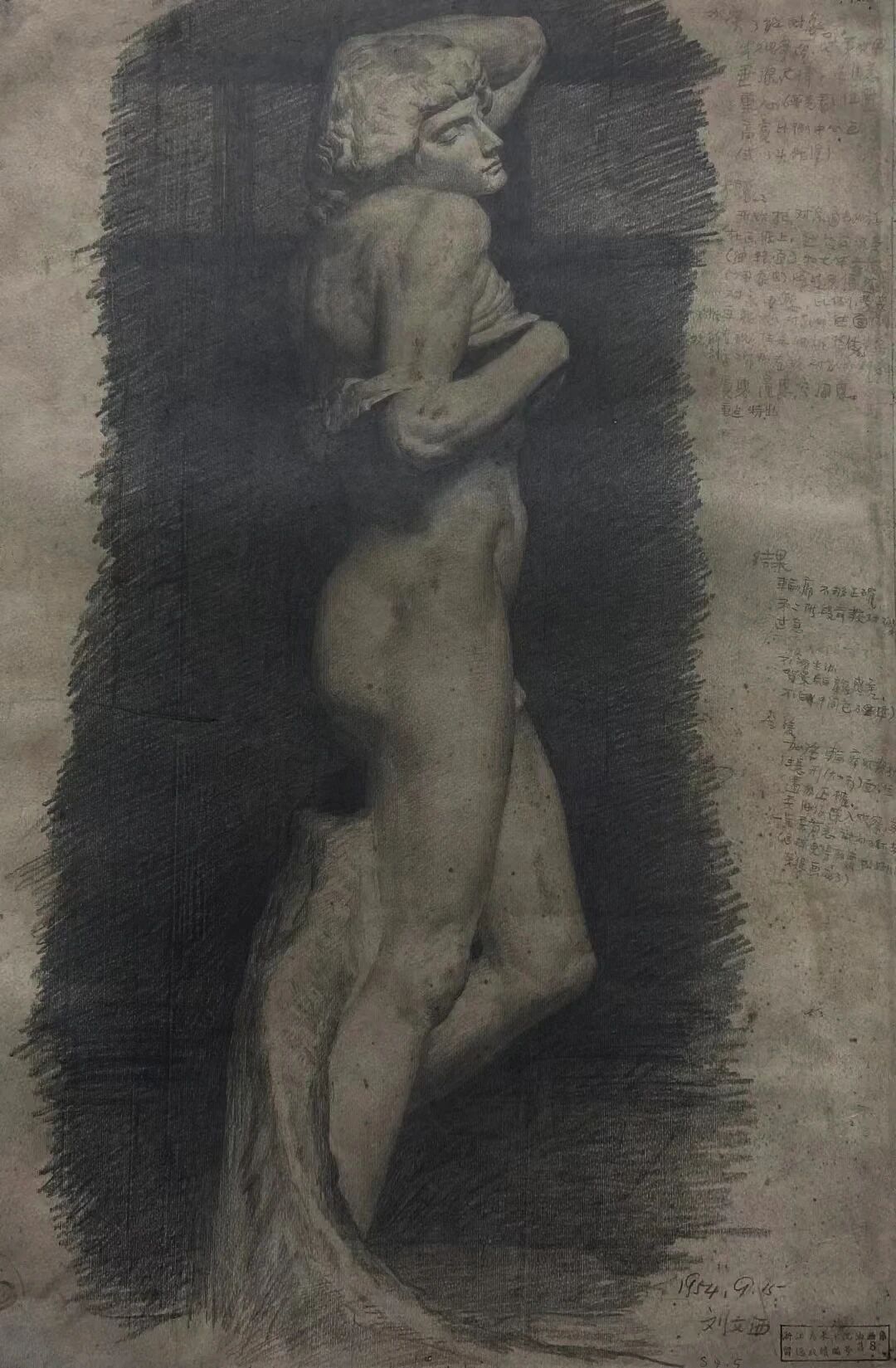 马宏道-《石膏像》-94×71cm-纸本素描-1960年