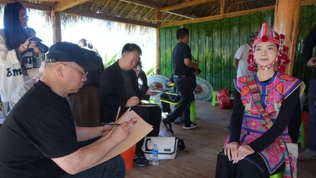 理论的生命力在于实践。本次“民族形象”研讨会上关于中国人物画时代使命、民族精神表达的深刻探讨,在丘北的青山绿水间找到了最鲜活的注脚。当师生们走出课堂与展厅,置身于菜花菁的静谧、仙人洞村的烟火气、石别村的质朴之中时,艺术的焦点从理论思辨精准投向了鲜活生动的个体。画笔之下,不再是概念化的民族符号,而是在这片土地上劳作、歌唱、生活的具体的人。这种“在场”的描绘,是实现从“风情再现”到“精神塑造”升华的关键一步,真正回应了“笔墨当扎根大地”的呼唤。