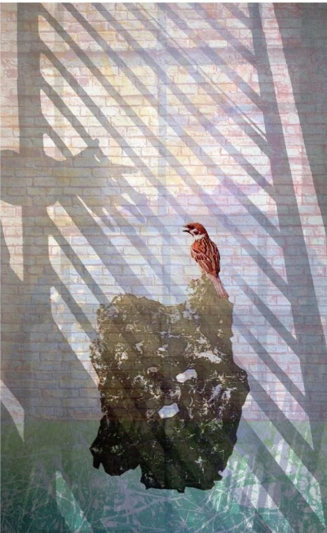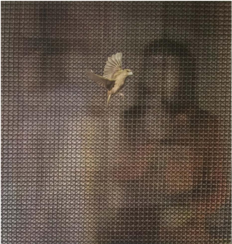 《网格外的一只鸟》丝网版画 72cmX67cm 2016年