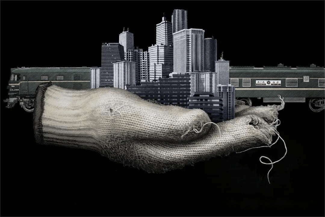 作品简介:作品以极具张力的黑白语言,将平凡物件升华为时代精神的象征。刀法铿锵,线条硬朗,西部新城在手套上方层层刻痕中拔地而起,折射出劳动者沉默而伟大的奉献品格。