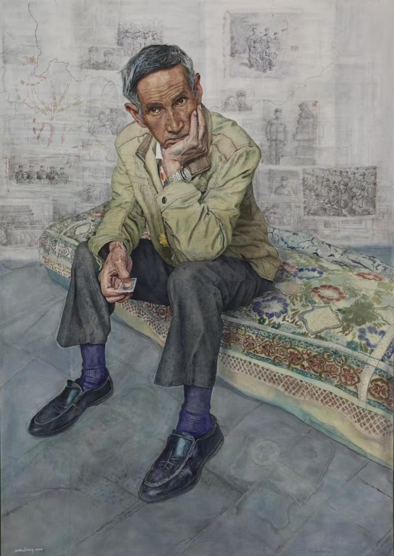 《军旅如歌——一名彝族老兵的青春回忆》 165×115cm 纸本水彩 2024年 周立明