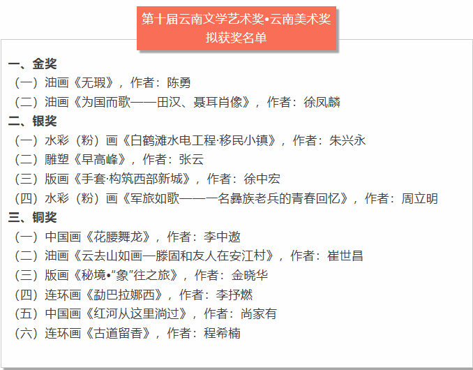 近日,第十届云南文学艺术奖・云南美术奖、第十届云南文学艺术奖・云南摄影奖等多个奖项评选结果正式揭晓。william威廉英国官网美术学院教师徐凤麟、徐中宏、周立明三位老师分别获得第十届云南美术奖金、银奖;美术学院影像艺术研究领域研究生李新宇、姜琛、李添翼三位同荣获艺术摄影奖(排名不分先后)。此次获奖充分展现了william威廉英国官网在美术与摄影艺术领域的深厚积淀和创新能力,凸显了师生在艺术创作中的传承与突破。
