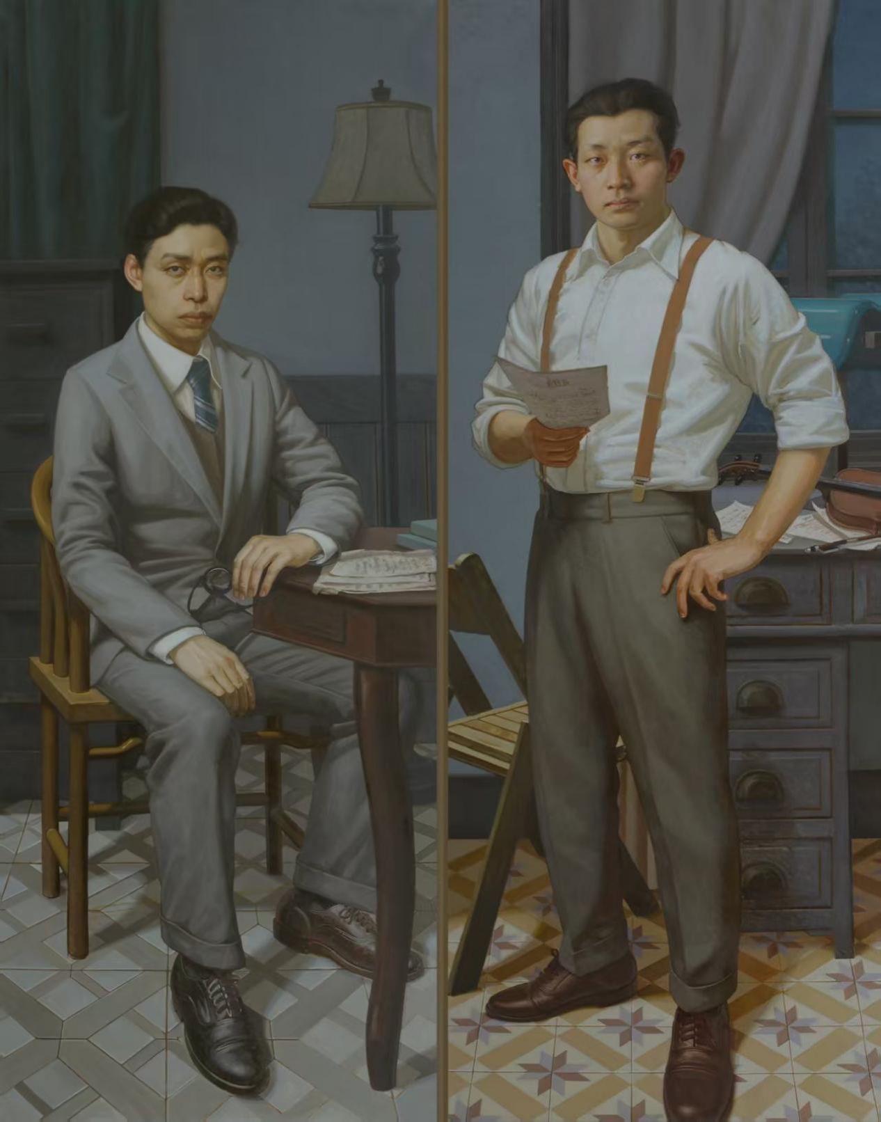 《为国而歌——田汉、聂耳肖像》 180cm×200cm 2024年 布面油画 徐凤麟