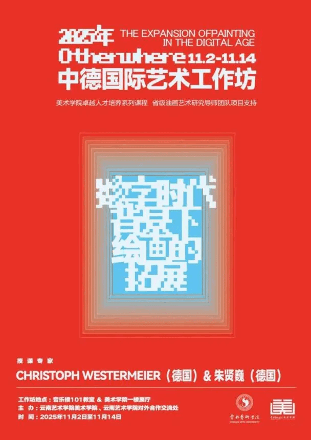 积极推进国际交流与合作,组织师生参与美术学院“Otherwhere中德国际工作坊”,由德国艺术家Christoph Westermeier及朱贤巍主持教学,围绕“数字时代背景下绘画的拓展”主题,通过讲座、实践教学、对话交流等形式,探讨跨文化语境下的艺术创作,拓宽了师生的国际视野与创作思路。通过引进国际先进教学理念与艺术创作方法,加强与国外艺术院校、艺术家的交流合作,为师生提供了更广阔的学习与展示平台,提升了学科的国际化水平。