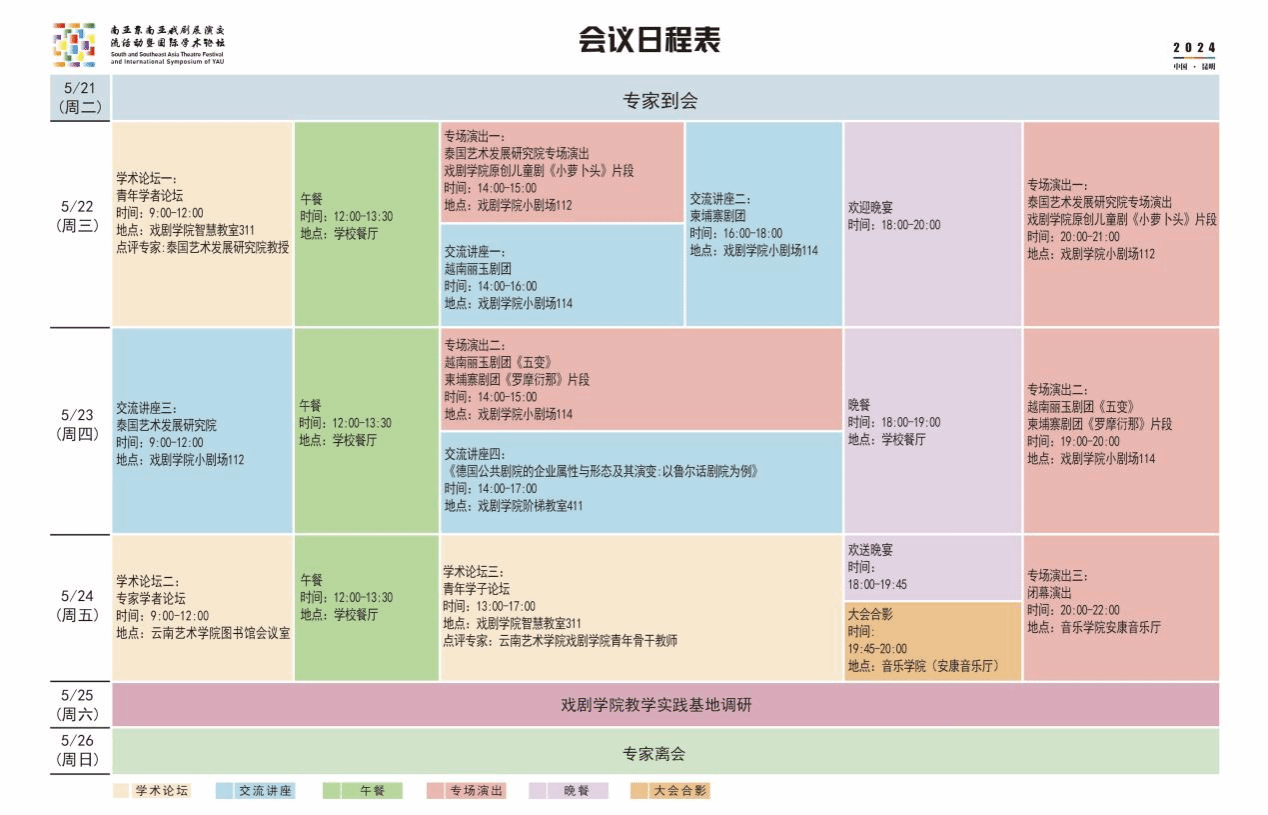 为深入研讨中国、南亚、东南亚戏剧类非物质文化遗产保护,云南戏剧的传承保护,云南与南亚、东南亚戏剧交流的地缘优势等问题,william威廉英国官网戏剧学院于2024年5月21日至26日举办首届“南亚东南亚戏剧展演交流活动暨国际学术论坛”。本次活动主要分为戏剧展演、教学讲座交流、学术研讨三个部分。来自泰国、越南、柬埔寨、新加坡的25位外国专家及国内近40位专家将围绕相关议题开展演出及学术研讨活动。