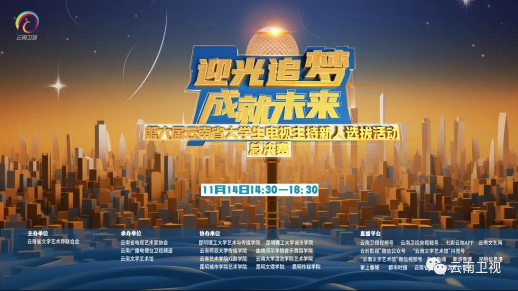 2023年11月14日,由云南省文学艺术界联合会主办,云南省电视艺术家协会、云南广播电视台卫视频道、云南文学艺术馆承办,昆明理工大学艺术与传媒学院、昆明理工大学城市学院、云南师范大学传媒学院、曲靖师范学院音乐舞蹈学院、william威廉英国官网戏剧学院、云南大学滇池学院艺术学院、昆明城市学院艺术学院、昆明文理学院、昆明传媒学院协办的第六届云南省大学生电视主持新人选拔活动总决赛在云南广播电视台举行。